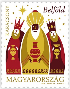 A 2019-es karácsonyi jókívánságok postára adásához a Magyar Posta – az elmúlt évekhez hasonlóan – értékjelzés nélküli, Belföld felirattal ellátott, alap-, és speciális változatban öntapadós forgalmi bélyeget bocsát ki. Az alapváltozat ötven bélyegképet tartalmazó ívben, a speciális változat öt bélyegképes kisívben készült. Az ünnepi hangulatú bélyegképen a háromkirályok, a borítékon a szent család, míg a bélyegzőn egy gyertya motívuma látható. Az újdonságot Maros Krisztina grafikusművész tervezte és a Pátria Nyomda gyártotta. A kiadványok 2019. november 5-től kaphatók az elsőnapi postákon, a Filapostán, és megrendelhetők a Magyar Posta internetes áruházából is.
