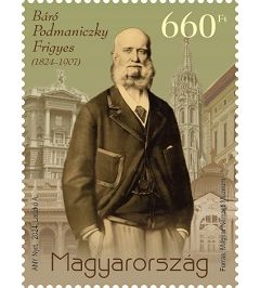 A Magyar Posta alkalmi bélyeg kibocsátásával köszönti báró Podmaniczky Frigyes születésének 200. évfordulóját. A bélyeg 40.000 példányban Laczkó Anita grafikusművész tervei szerint az ANY Biztonsági Nyomda Nyrt.-ben készült. 2024. március 25-től kapható a Filapostán, a filatéliai szakszolgálatokon, egyes postákon és a posta oldalán. Báró podmanini és aszódi Podmaniczky Frigyes (1824–1907) magyar politikus, író, valóságos belső titkos tanácsos, országgyűlési képviselő, a fővárosi közmunkatanács alelnöke, a Magyar Tudományos Akadémia levelező tagja. 1843-tól tevékenyen részt vett a politikai életben. Az 1848–49-es forradalom és szabadságharcban huszárkapitány és osztályparancsnok volt. A világosi fegyverletétel után Aradon az osztrákok besorozták közlegénynek. 1873-tól 1905-ig a Fővárosi Közmunkák Tanácsa alelnökeként sokat tett Budapest fejlesztéséért. Az ekkor elkészült fővárosi általános rendezési tervek alapján épültek ki a körutak és a sugárutak, a dunai rakpartok, három Duna-híd stb. Döntő szerepe volt a Hősök terén álló Mil-lenniumi emlékmű, a budai vár a Halászbástyával és a Mátyás-templommal, illetve a Steindl Imre által tervezett Országház megvalósulásában. Ez alatt az idő alatt épült fel három színház: Népszínház, Operaház, Vígszínház. Aktív szerepet játszott a városi zöldterületek, a Városliget, a Zugliget, a Sváb-hegy és a Gellérthegy rendezésében. 1875-1886 között a Nemzeti Színház intendánsa volt, majd az adriai biztosító társulat magyarországi osztályának intézője lett. 1861 és 1906 között országgyűlési képviselő, 1861-ben az országgyűlés alelnöke lett. Szépirodalmi művei, nem maradandó irodalmi értékek, de naplója és útleírásai sok adatot tartalmaznak. Minden energiáját feladatainak szentelte, soha nem nősült meg, és mivel nem volt családja, csak Budapest, így Budapest vőlegényének is nevezték. Az alkalmi bélyegen báró Podmaniczky Frigyes – a háttérben pedig budapesti nevezetességek mai fotói: Andrássy út és a Bajcsy-Zsilinszky út kereszteződése, Mátyás-templom, Operaház és Vígszínház – láthatók. Az alkalmi borítékon egész alakos képe szerepel. Az elsőnapi bélyegzésű alkalmi borítékon (FDC) található bélyegző lenyomatán a jeles személy aláírása szerepel.