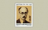 A 12,- Ft -os bélyegen Eötvös József és a Torziós Ingája látható.