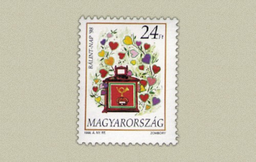 A Bálint nap alkalmából 24,- Ft -os blyeg jelent meg, amin egy Levélszekrény látható.