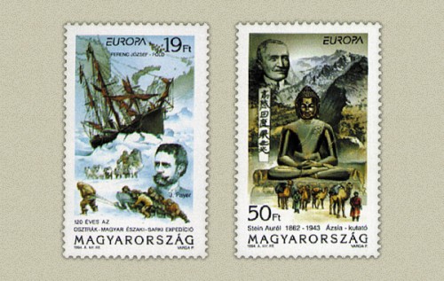 Az Európa sorozatban megjelent 19,- Ft -os bélyegen Osztrák - magyar Északi sarki expedíció (1874), az 50,- Ft -os bélyegen Stein Aurél (1862-1943) látható.