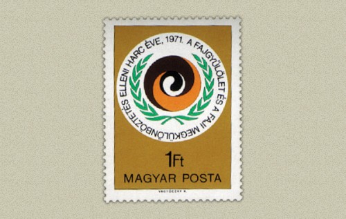 A faji megkülönböztetés elleni harc alkalmából megjelent bélyegen a faji megkülönböztetés elleni harc emblémája látható.
