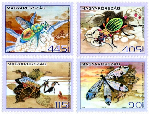 Évről évre visszatérő hagyománya a Magyar Postának, hogy Magyarországon honos állatfajokat, állatfajtákat mutat be bélyegújdonságain. Ezúttal a jól és kevésbé ismert rovarok közül a sorszámozott bélyegblokkra a zöld acsa, a bélyegsorozat címleteire pedig a párducfoltos hangyaleső, a kétszínű fogólábú-fátyolka, az aranyfutrinka és a nagy smaragdfémdarázs került. Utóbbi két címlet esetében az ofszet eljárás ún. diffrakciós fólianyomtatással egészült ki, melynek köszönhetően a bélyegképeken látható rovarok a valódi példányokhoz hasonlóan csillognak. A miniatűr műalkotások Székely Kálmán tervei alapján készültek a Pénzjegynyomdában. A bélyegújdonság szeptember 9-én jelenik meg a Filapostán és az ország nagyobb postáin, de a Posta honlapján keresztül is megvásárolható.